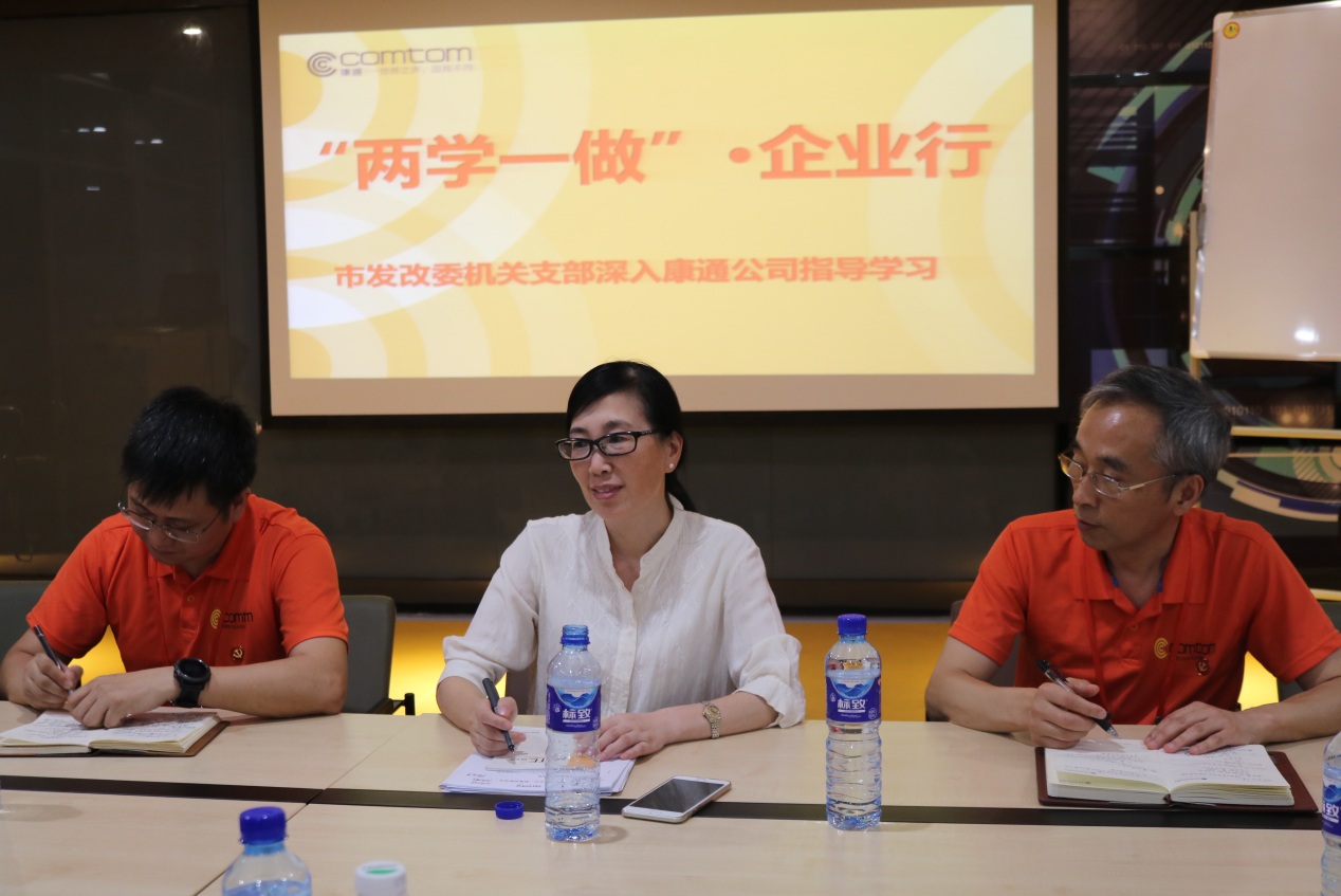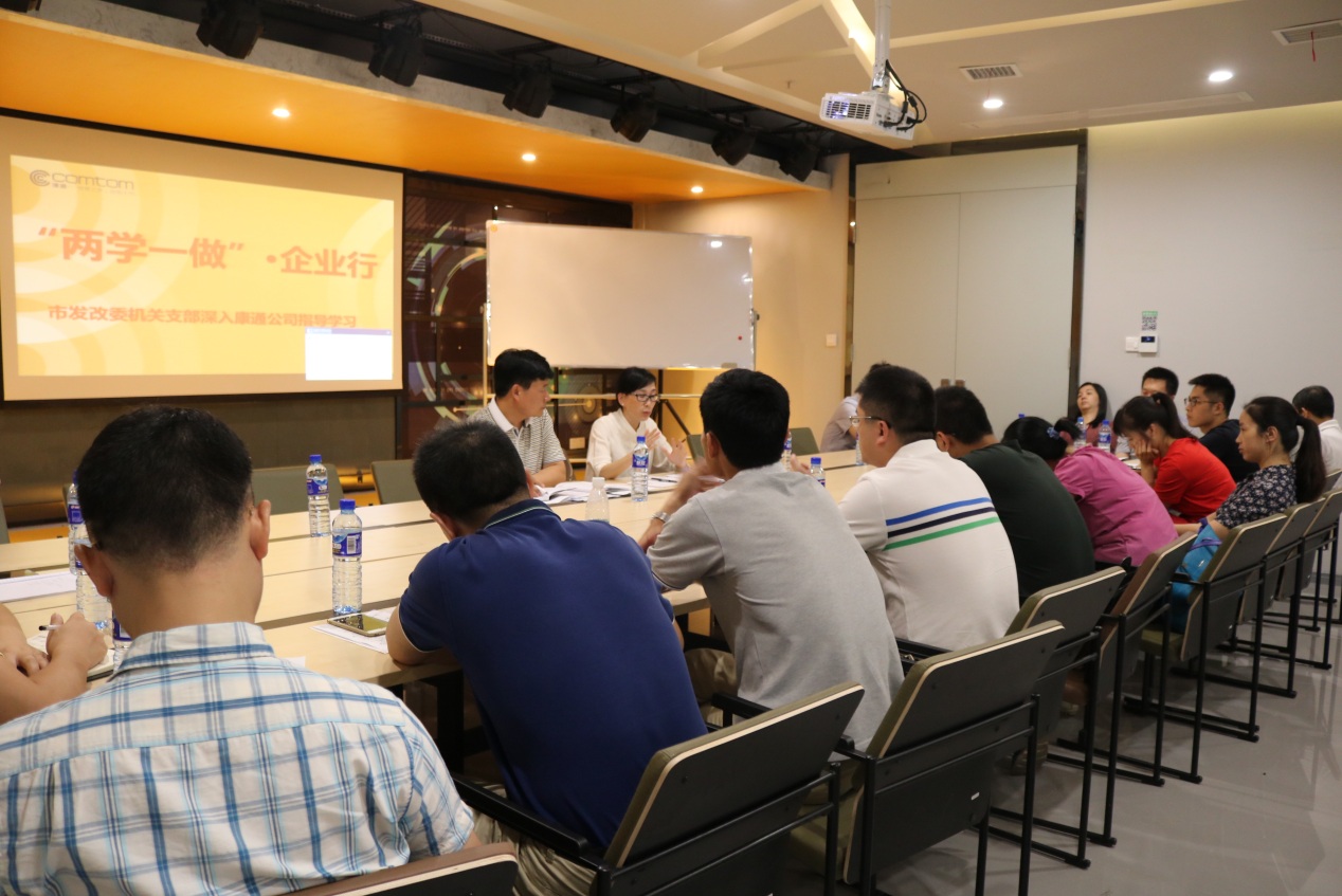 發(fā)改委機(jī)關(guān)的黨員同志們參觀完康通公司創(chuàng)新研發(fā)中心、無塵貼片車間及綜合辦公樓后,在康通公司綜合樓會(huì)議室組織了“兩學(xué)一做”專題學(xué)習(xí)。由曾副主任上黨課,黃書記組織學(xué)習(xí)了習(xí)近平有關(guān)重要講話。交流學(xué)習(xí)時(shí),發(fā)改委投資處蔣處長指出,政府機(jī)關(guān)的工作就是要為基層企業(yè)“松綁、減負(fù)、保障、服務(wù)”,做好“架天線、接地氣、解困難”的工作。重點(diǎn)辦張主任講到:政府機(jī)關(guān)要做好“落實(shí)企業(yè)產(chǎn)業(yè)政策、加強(qiáng)引導(dǎo)民營企業(yè)轉(zhuǎn)變發(fā)展方式、做好協(xié)調(diào)服務(wù)”的工作,做到“不越位、不錯(cuò)位、不缺位”。這些發(fā)言,使基層企業(yè)的同志深受鼓舞和感動(dòng)。