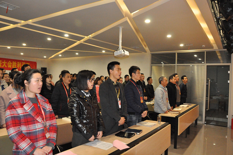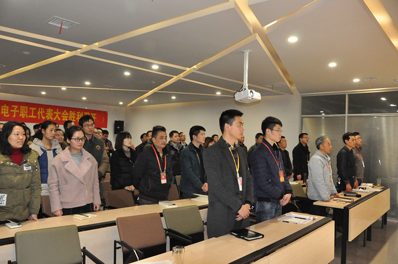 2016年12月30日下午13時,經(jīng)康通電子全體職工民主選舉的61名職工代表和9名特邀代表歡聚一堂。在激昂的國歌聲中,主持人袁雅玲宣布康通電子第一屆職工代表大會第一次全體會議開幕。