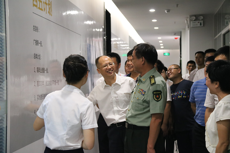 本網訊(通訊員 袁雅玲)7月19日上午,長沙市委常委、警備區司令員王忠斌蒞臨康通電子調研,市委統戰部副部長、工商聯黨組書記丁文,市經信委黨委委員、工會主任歐衛兵,芙蓉區委副書記、區長周春暉,區委常委、隆平園區黨工委書記王曙光等領導參加,公司董事長劉雅浪、黨支部書記夏光國、運營副總方青及公司幾位復轉軍人員工參與接待。