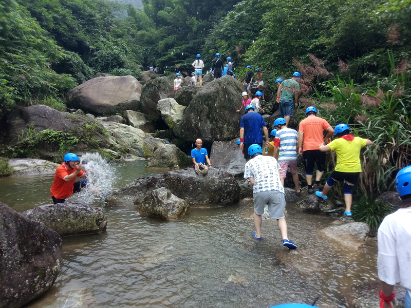 6月23日,職能部門(mén)組織到平江福壽山森林公園開(kāi)展團(tuán)隊(duì)溯溪活動(dòng)。大山里的天氣就如孩子的臉說(shuō)變就變,剛到目的地時(shí)候還是艷陽(yáng)高照,下午卻是大雨傾盆,雖然天氣多變,給溯溪活動(dòng)的開(kāi)展帶來(lái)困難,但大家熱情高漲、興趣不減,依靠團(tuán)隊(duì)互幫互助的力量,依然完成既定目標(biāo)。