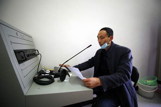 龍山縣茨巖塘鎮(zhèn)包谷村支部書記張宏林正在通過“村村響”播報防控政策和知識